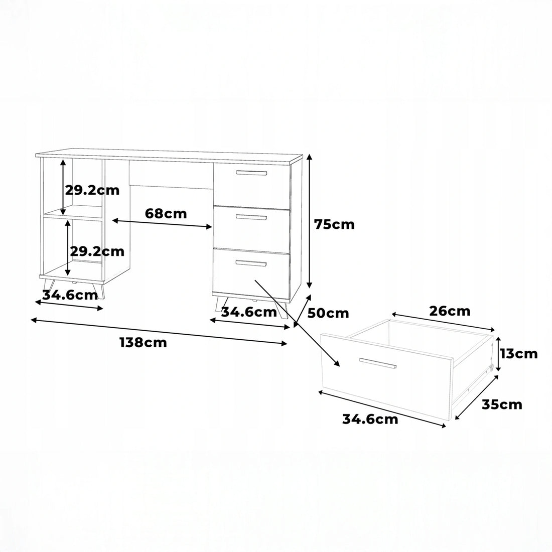 Przygotowaliśmy szkic z wymiarami, opis nóg z litego drewna oraz zestawienie kolorów i materiałów, abyś mógł wybrać biurko dopasowane do Twojego stylu pracy i wnętrza.