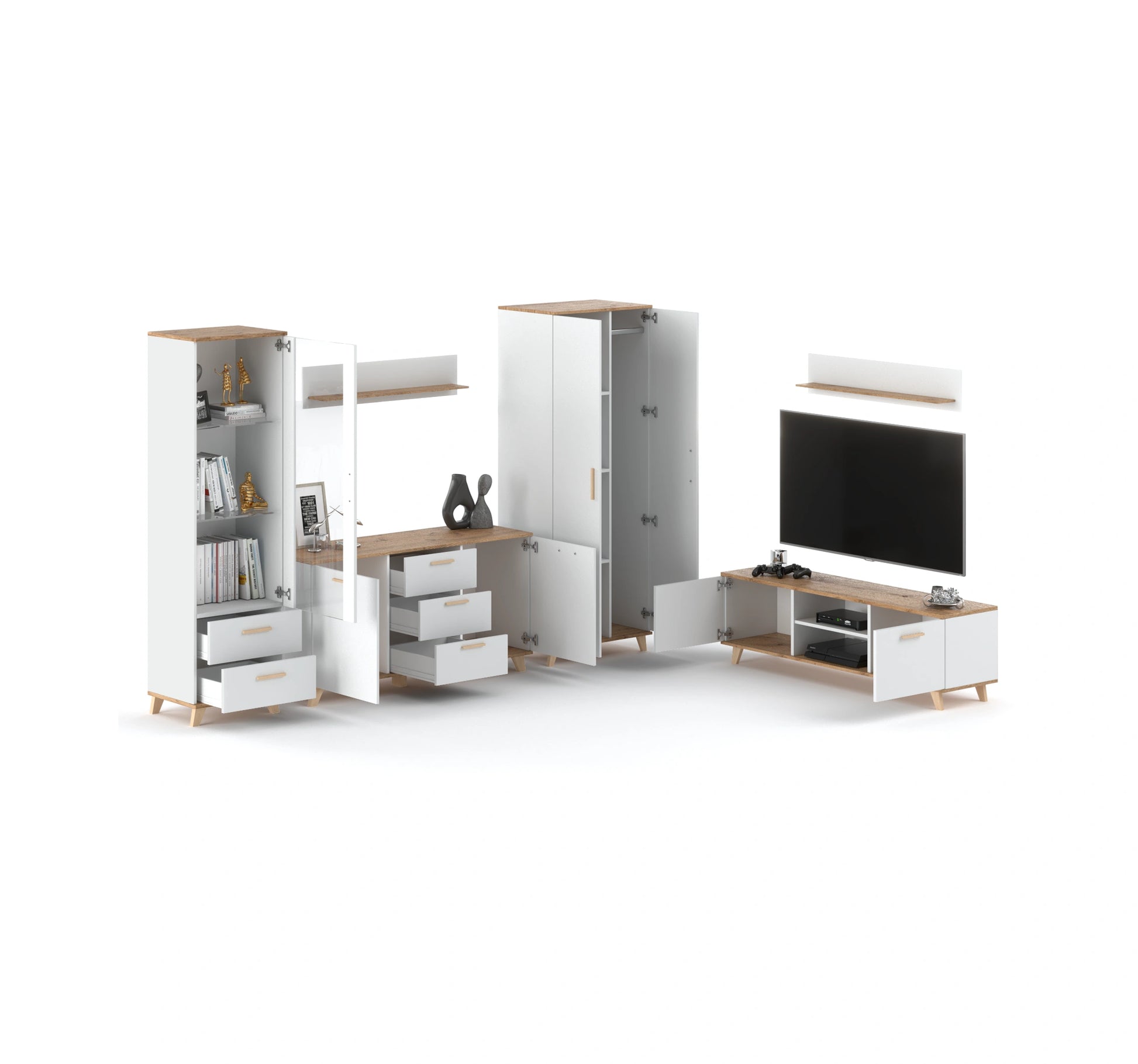Z jakich materiałów wykonany jest zestaw mebli do salonu?