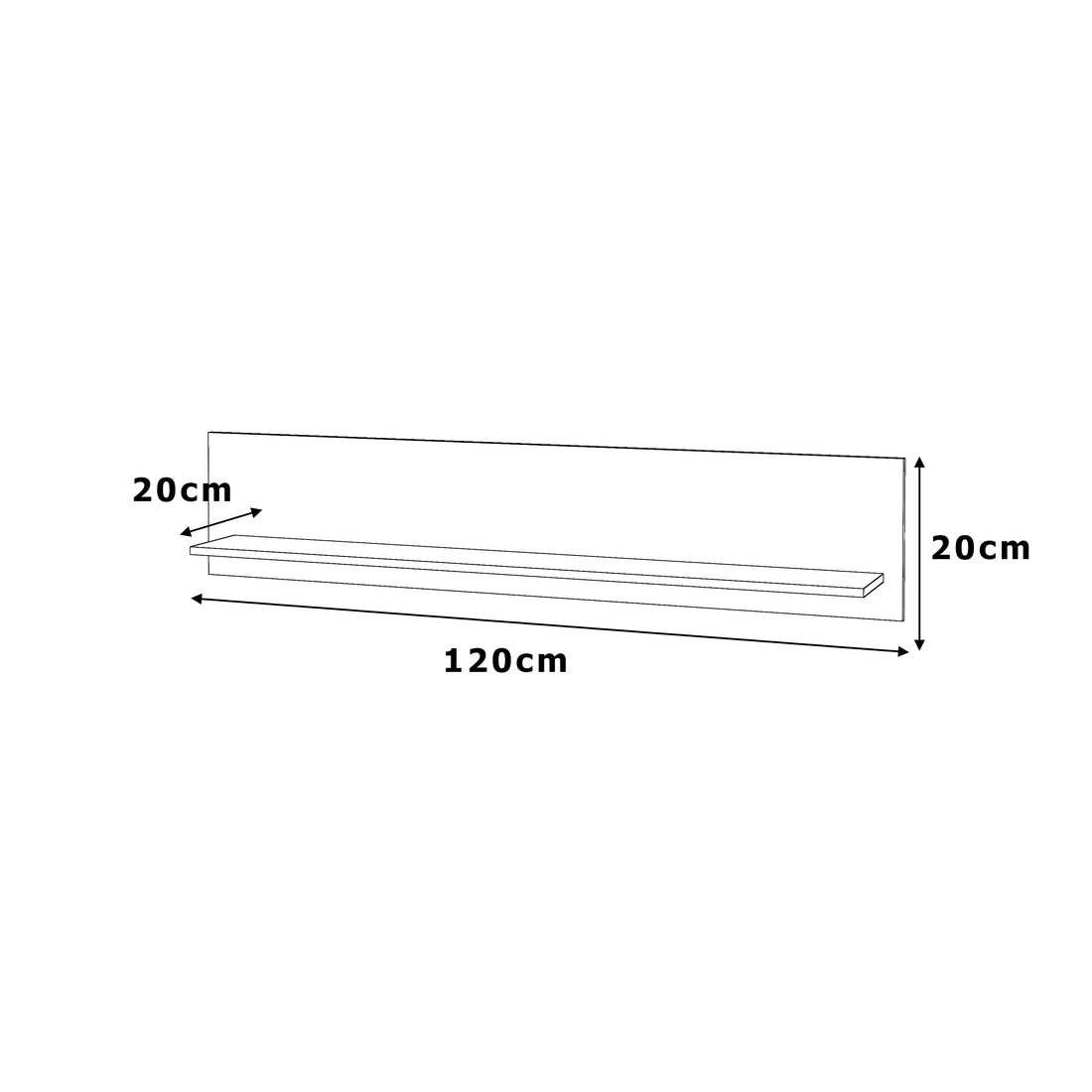 Prezentujemy szkic z wymiarami, elegancki wygląd półki w zestawie oraz zestawienie dostępnych kolorów i materiałów.