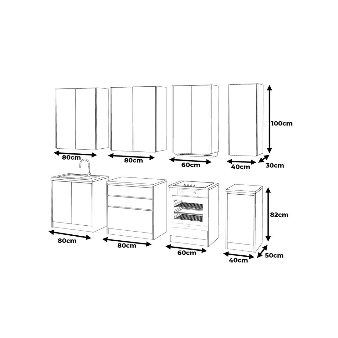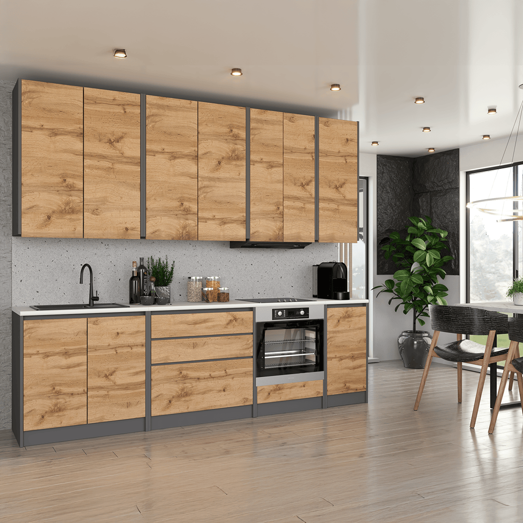 Zestaw Mebli Kuchennych Bezuchwytowy 260 cm Zabudowa Piekarnika