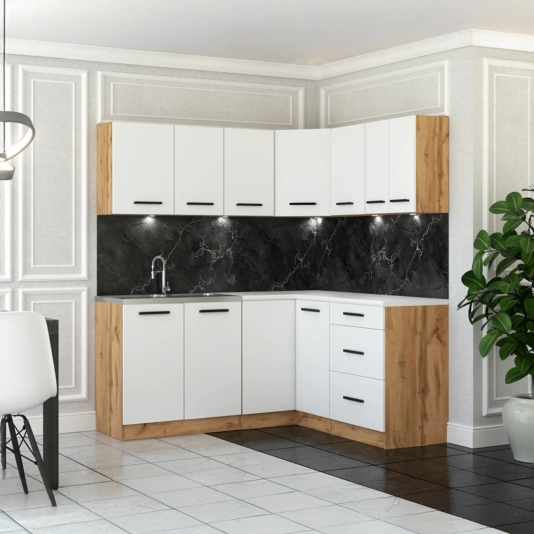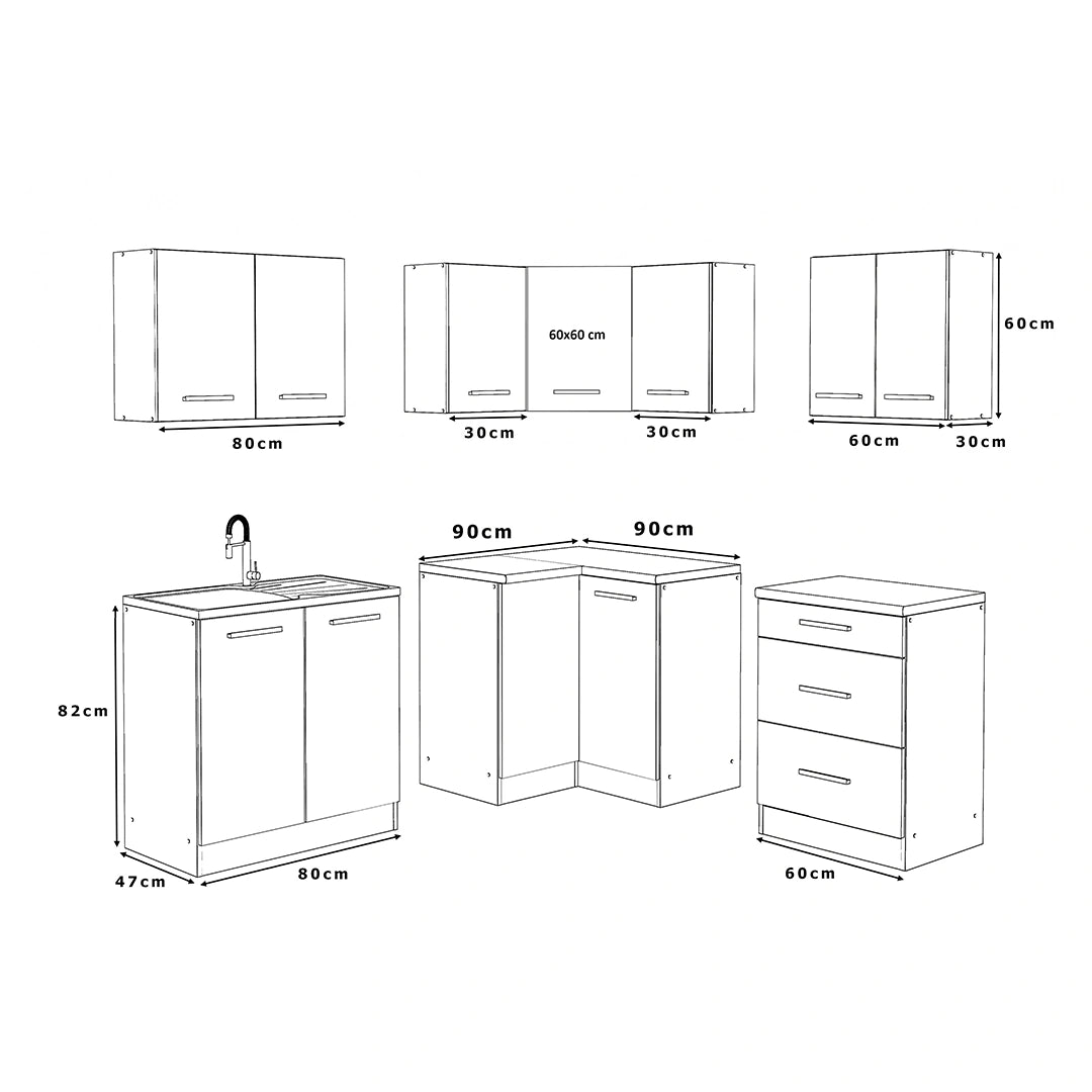 Kuchnia narożna Diana to praktyczny zestaw mebli, który świetnie wykorzystuje dostępną przestrzeń. Pojemne szafki, narożne rozwiązania i funkcjonalne szuflady sprawiają, że gotowanie i przechowywanie stają się wygodne i dobrze zorganizowane.
