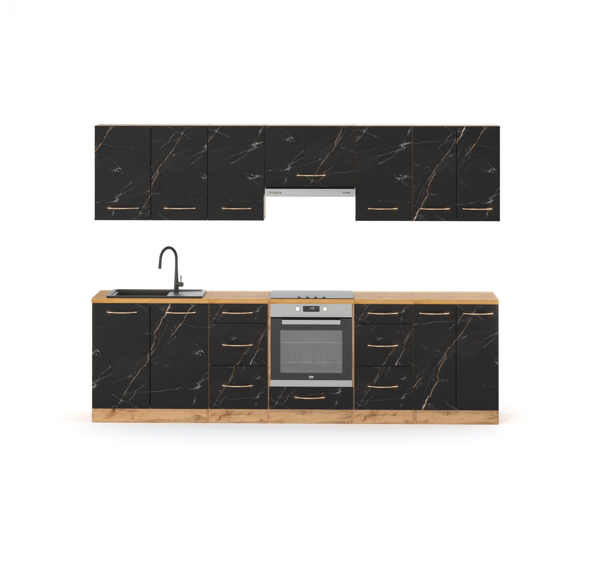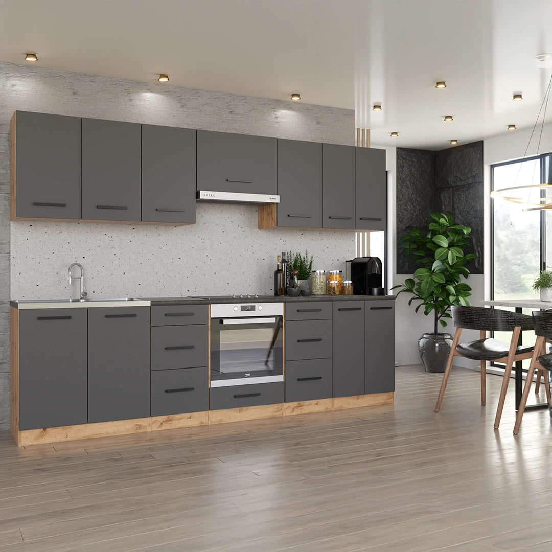 Kuchnia Royal to duży, funkcjonalny zestaw mebli, który łączy nowoczesny styl i wygodę użytkowania. Pojemne szafki, praktyczne szuflady i przemyślany układ sprawiają, że gotowanie i przechowywanie stają się proste i przyjemne.